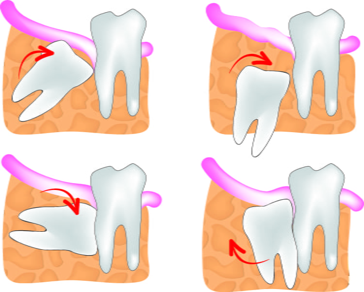 Problems may arise when they erupt “off course”, growing out sideways, into other teeth, or even get stuck under the gum. If this happens it can lead to swelling, severe pain and infection.