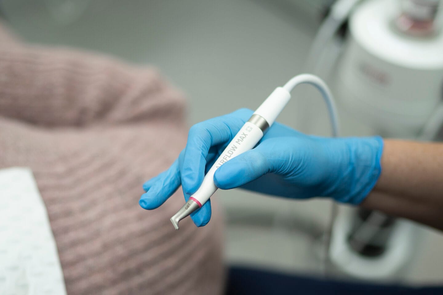 As a certified EMS practice, we’re proud to offer the AIRFLOW® Prophylaxis Master, the latest EMS tool designed for Guided Biofilm Therapy. Tailored for professional use, this device enhances caries and perio prevention, as well as maintenance, through high precision, ergonomic design, and top-tier hygiene standards. Built for the core treatments of Guided Biofilm Therapy, the AIRFLOW® Prophylaxis Master comfortably removes biofilm, stains, and young calculus both above and below the gumline, reducing the need for traditional hand or power instruments.